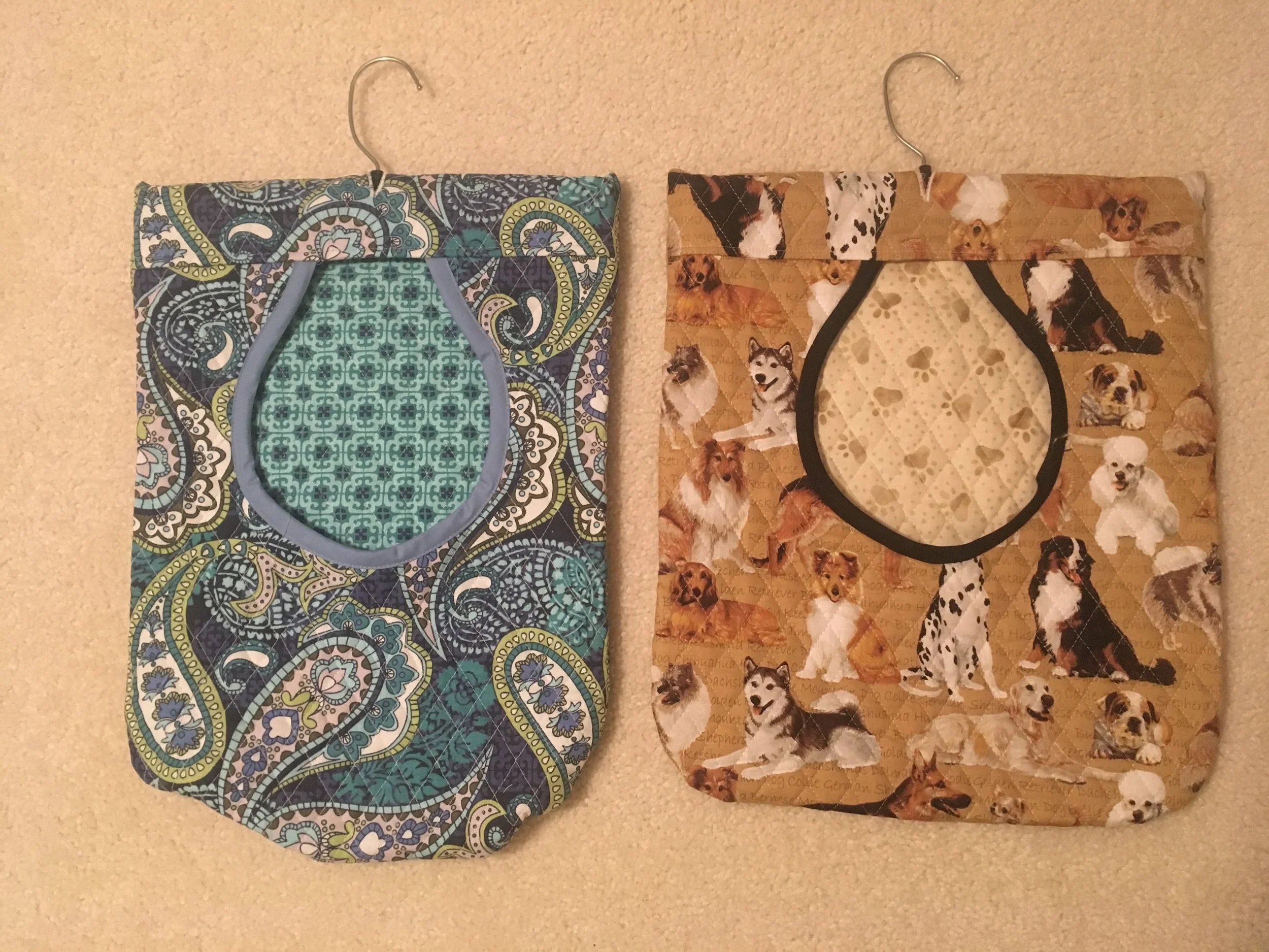 An original design, 13" x 15". Sturdy, quilted bag on a swivel hanger. Sample photos show available bags or you may request a fabric design/colors.
