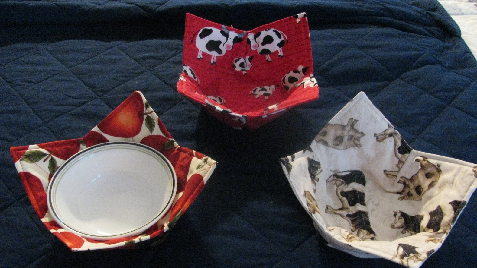 Microwave potholders protect your hands when removing hot dishes from the microwave and insulate food to keep it warm. "Medium" is cereal bowl size and "Small is good for mugs. Larger sizes can be custom made. Many fabric choices available.